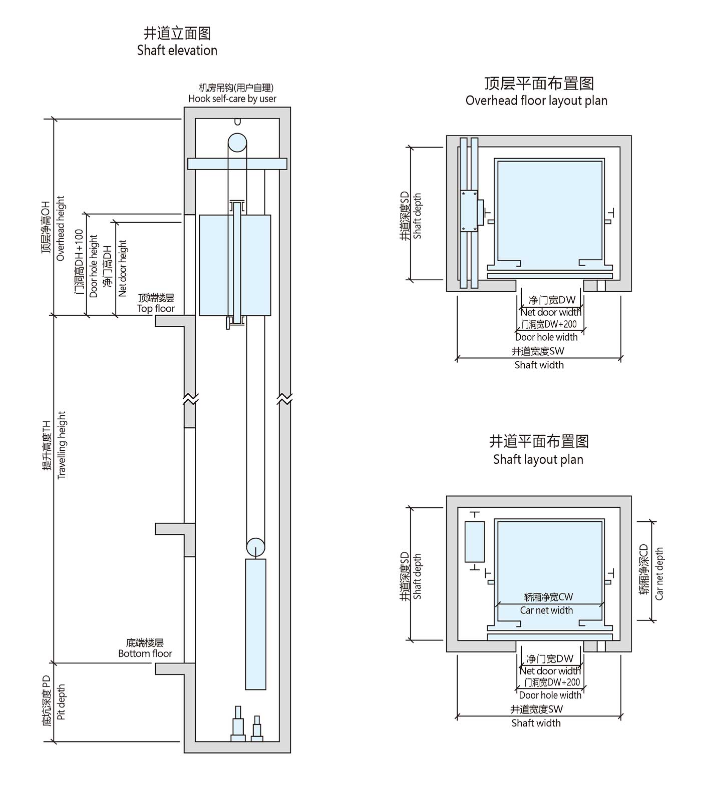 - 機房只是井道的一個延伸,無需占用其余空間;