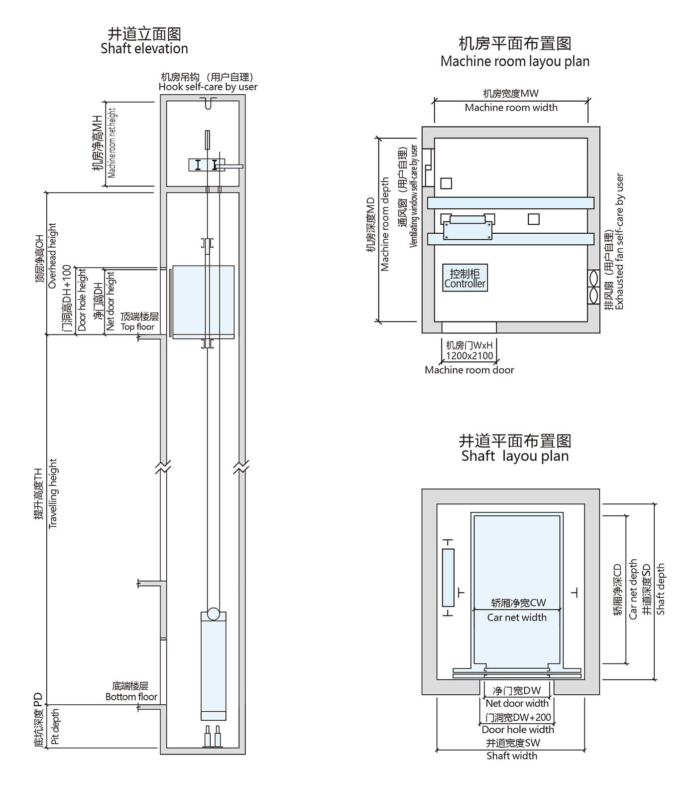 機房尺寸(mm) Machine room size |